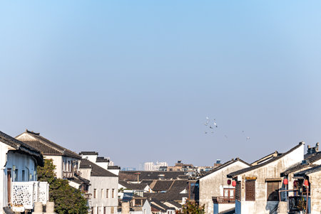 Old-town district, classic vintage architecture. Photo in Suzhou, China.