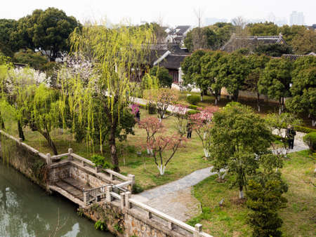 Suzhou, China - March 21, 2016: Springtime at Ruiguang pagoda park