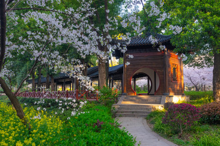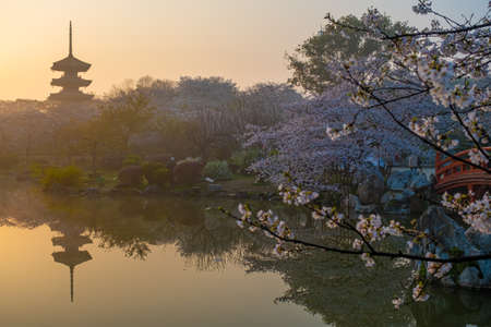 Landscape of the spring cherry blossoms, in Wuxi Yuantouzhu, also named Turtle Head Isle in English