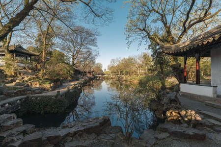 Architecture, buildings and landscapes of Suzhou Humble Administrator's Garden, the most famous Chinese classic garden in Suzhou, China