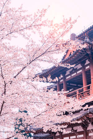 Cherry blossom at park and exterior ancient building
