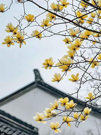 A wintersweet plant growing by an old house in Suzhou, China