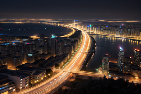 Bridges and high rise buildings in the city night view
