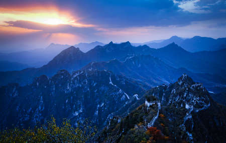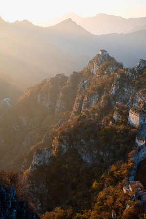 Great Wall of China at the jinshanling section,sunset natural landscape