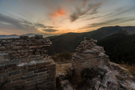 The Great Wall of China during beautiful sunset