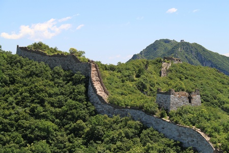 The Great Wall is in China. The Great Wall is under the blue sky and white clouds