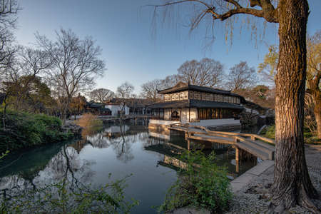 Beautiful Chinese garden in Suzhou, Jiangxi, China.