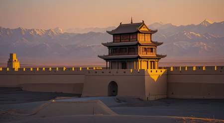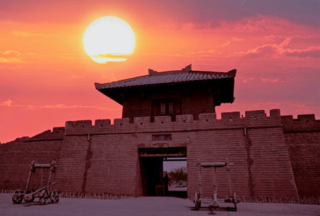 Sunrise of the Jiayuguan Pass Tower in GanSu,China