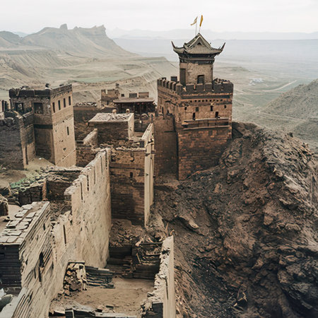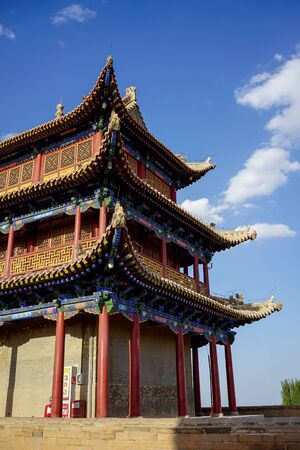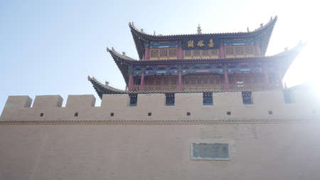 JiaYu, China, 1st of Jan 2020, ancient castle, building and fortress found in Jiayu Guan, the western end of the great wall of China