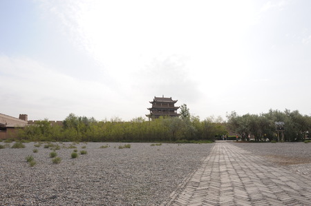 Jiayuguan Pass Tower on the Gobi Desert in GanSu,China