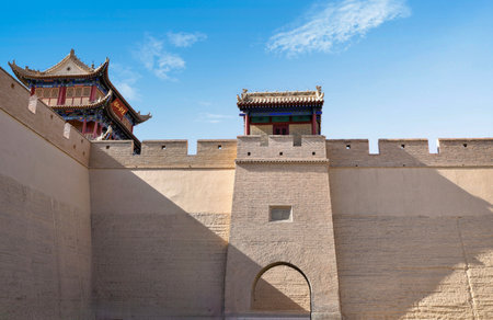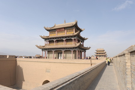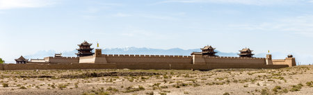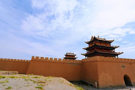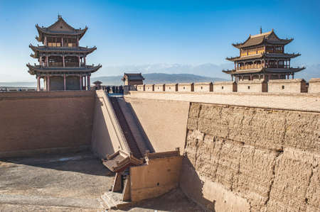 JIAYUGUAN, CHINA - AUGUST 22, 2018:Towers of Jiayuguan Fort, Gansu Province, China
