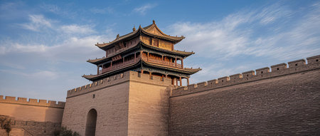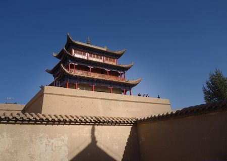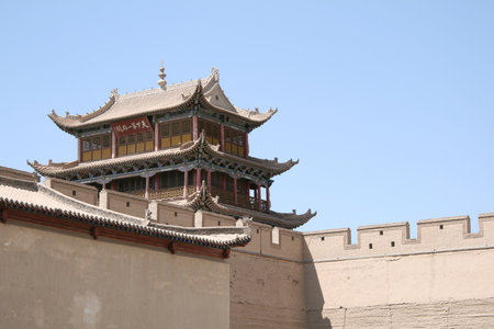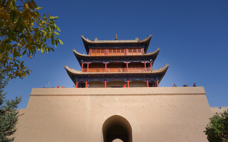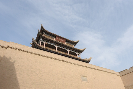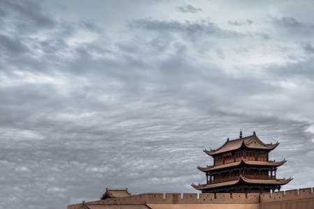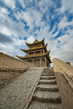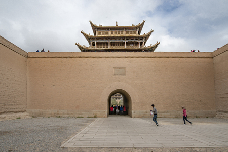 JIAYUGUAN, CHINA - AUGUST 22, 2018: Tower of Jiayuguan Fort, Gansu Province, China