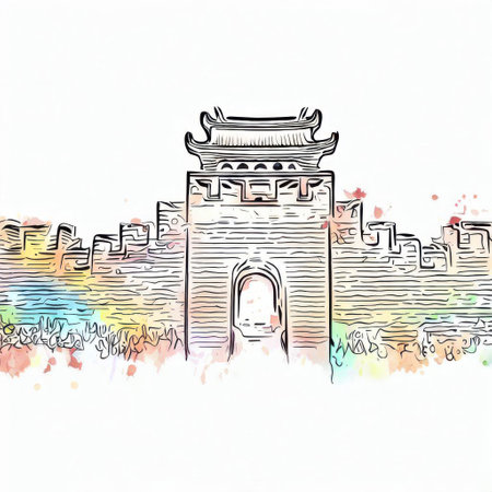 Illustration of Tiananmen Gate in Beijing, China on watercolor background