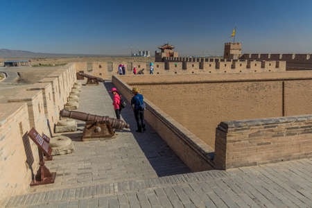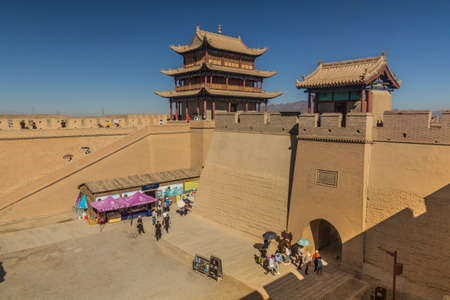 JIAYUGUAN, CHINA - AUGUST 22, 2018: Tourists visit Jiayuguan Fort, Gansu Province, China