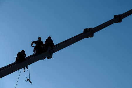 workers making repairs on the Hercilio Luz bridge, Florianopolis, Santa Catarina, Brazil