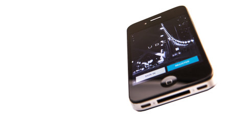 KUALA LUMPUR, MALAYSIA - FEBRUARY 8TH 2015. Uber mobile apps. Uber is smartphone app-based transportation network and taxi company operating in 53 countries around the world