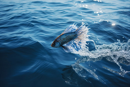 Astonishing Sight: Flying Fish Glide Above the Deep Blue Waters of the Atlantic Ocean - AR 3:2