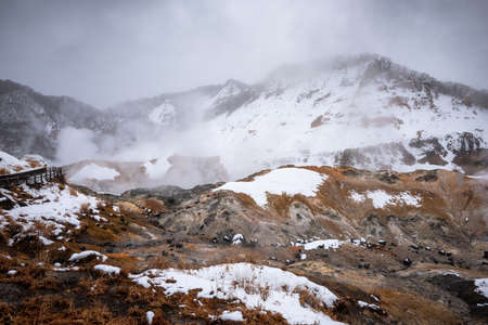 Noborobetsu, Hokkaido, Japan - DEC 17, 2016 : Jigokudani, known in English as Hell Valley is the source of hot springs for many local Onsen Spas in Noboribetsu, Hokkaido, Japan.