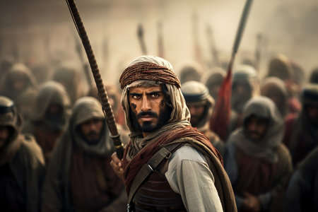 Generative AI Image of Arabian Military Army Holding Spear Weapon Ready to War
