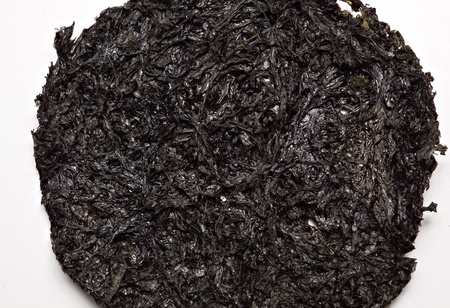 Dry laminaria japonica(kelp)Isolated on white background. Kombu seaweed, traditional Japanese ingredient for cooking Dashi soup, copy space