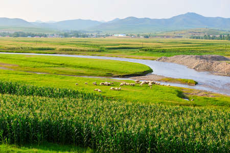 Green pastoral scenery beside the winding river