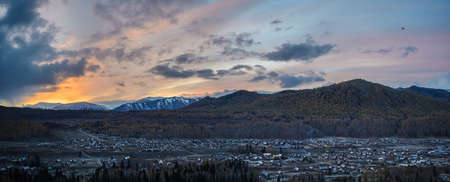 Sunset over the river in the mountains of the Altai Republic