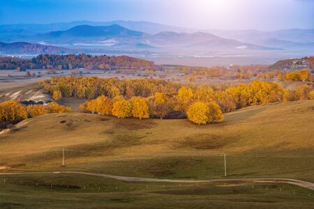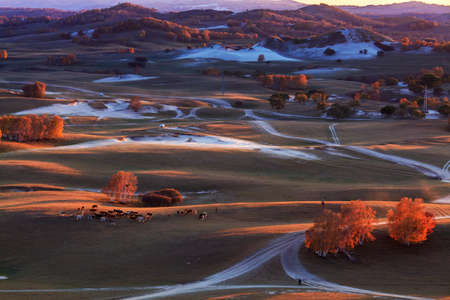 Ulan Buh Donggou prairie in autumn evening
