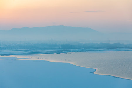 Sunset scenery in the winter, Luannan County, Hebei Province, China