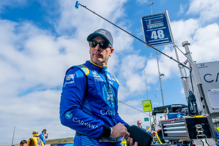 JIMMIE JOHNSON (R) (48) of the United States prepares to practice for the Firestone Grand Prix of Monterey at the WeatherTech Raceway Laguna Seca in Monterey, California.