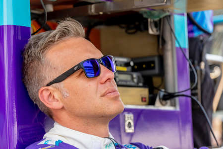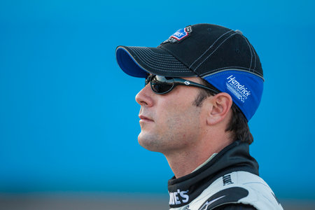 Concord, NC USA - May 15, 2015: NASCAR Sprint Cup Series driver, MICHAEL ANNETT, prepares for the Sprint Showdown at the Charlotte Motor Speedway.
