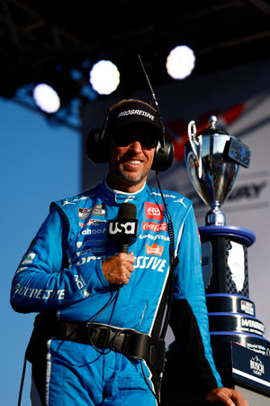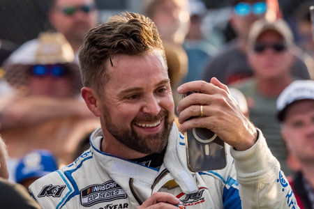 Madison, IL USA - September 07, 2025:Madison, IL USA - September 07, 2025:NASCAR Cup Series driver, DENNY HAMLIN (11) of Chesterfield, VA, wins the Enjoy Illinois 300 at World Wide Technology Raceway in Madison, IL.
