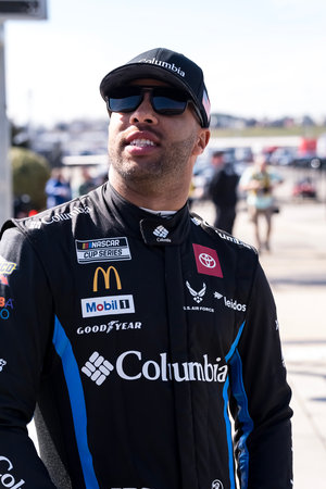 NASCAR Cup Series driver, BUBBA WALLACE (23) of Mobile, AL, prepares to qualify for the Ambetter Health 400 at the Atlanta Motor Speedway in Hampton GA.