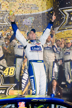 September 02, 2007 - Fontana, CA, USA: Jimmie Johnson wins the Sharp Aquos 500 NASCAR NEXTEL Cup race at the California Speedway in Fontana, CA.