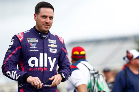 ALEX BOWMAN (48) of Tucson, AZ gets ready to practice for the AutoTrader EchoPark Automotive 400 in Dover, DE.