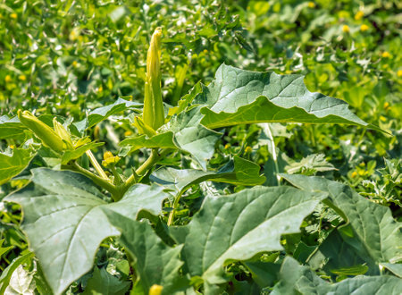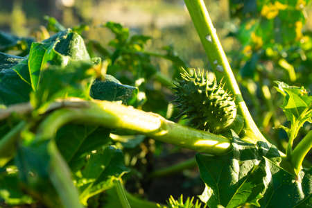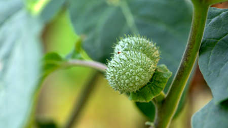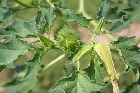 Plants of Datura. Showing green leaves and fruits, with fatal toxicity, that are poisonous plants.