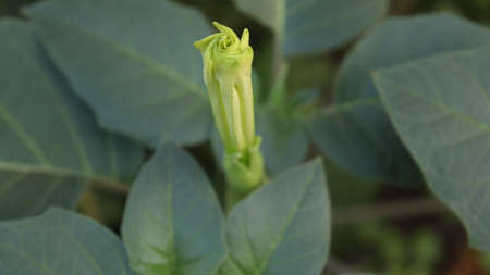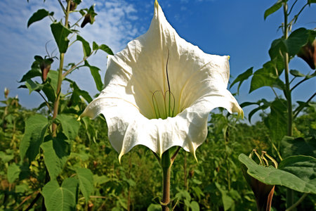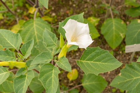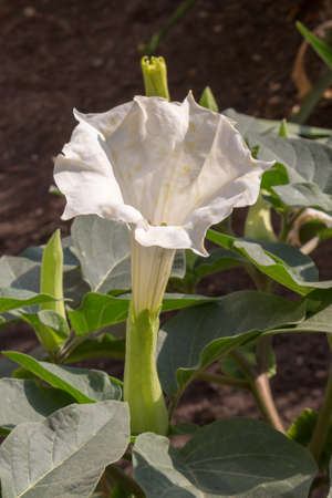 White trumpet shaped flower of hallucinogen plant Devils Trumpet or Jimsonweed.