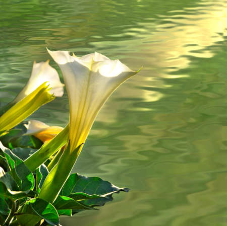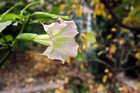 White Brugmansia flower or Angel's trumpets in the garden or nature