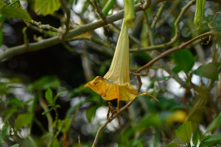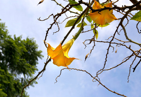Blossom yellow brugmansia named angels trumpet or Datura flower