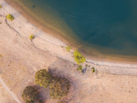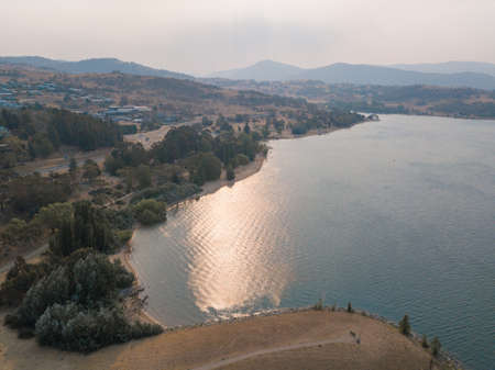 Aerial coastline view of Lake Jindabyne, NSW, Australia.