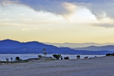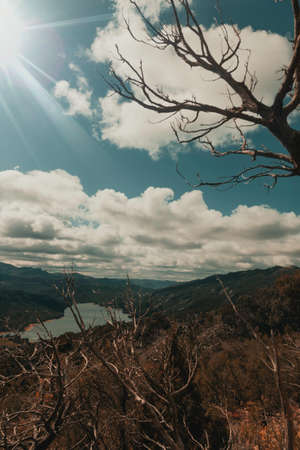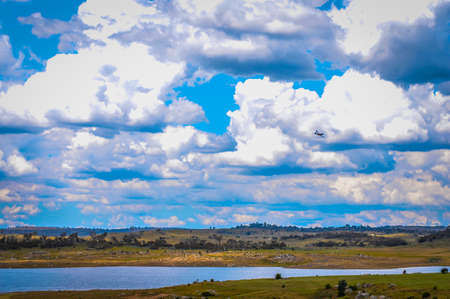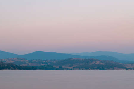 Sunlight across the hills and lake in country NSW Australia
