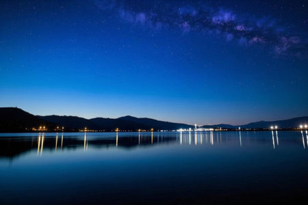 The scenery of lakes and mountains under the quiet starry sky, and the reflection of the lakes and galaxies are like a dream