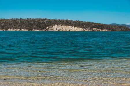 sunny pristine and deserted beach overlooking the South Pacific Ocean in Marion Bay along the East Coast of Tasmania Australia