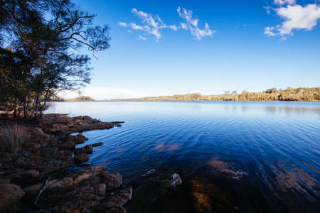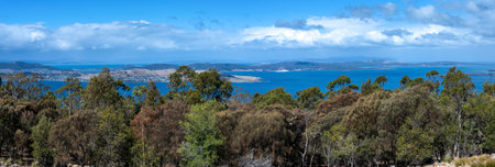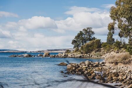 HOBART, AUSTRALIA - August 31st, 2019: beach landscape in Blackmans Bay in Hobart, Tasmania in Australia