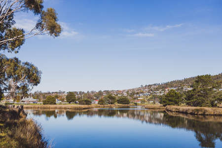 HOBART, TASMANIA - July 5th, 2020: beautiful Tasmanian seaside landscape in Blackmans Bay, a popular suburb south of Hobart