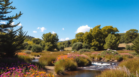 Botany Bay Mount Annan Botanical Garden in full flowering., generative AI