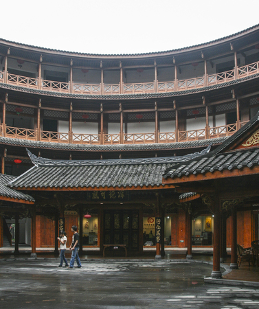 FUJIAN PROVINCE, CHINA - CIRCA MAY 2016: The Fujian tulou, the chinese rural dwelling unique to the Hakka minority in Fujian province.