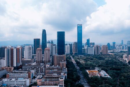 road floor surface with modern city landmark buildings in financial center shenzhen,China
