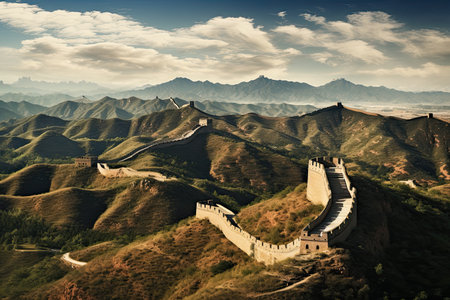 Majestic Great Wall of China in a beautiful summer day, China, AI Generated