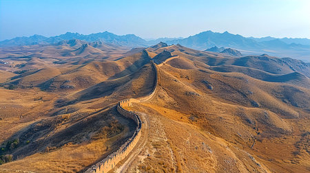 Majestic great wall of china at sunrise a panoramic view over rolling hills and lush vegetation