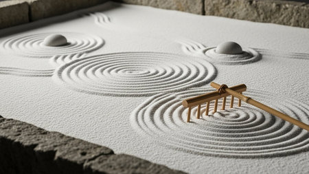 Serene Japanese zen garden featuring raked sand and rocks in minimalist design